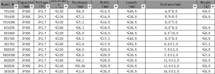 Attached the model list with 300mAh, More models contact us today .